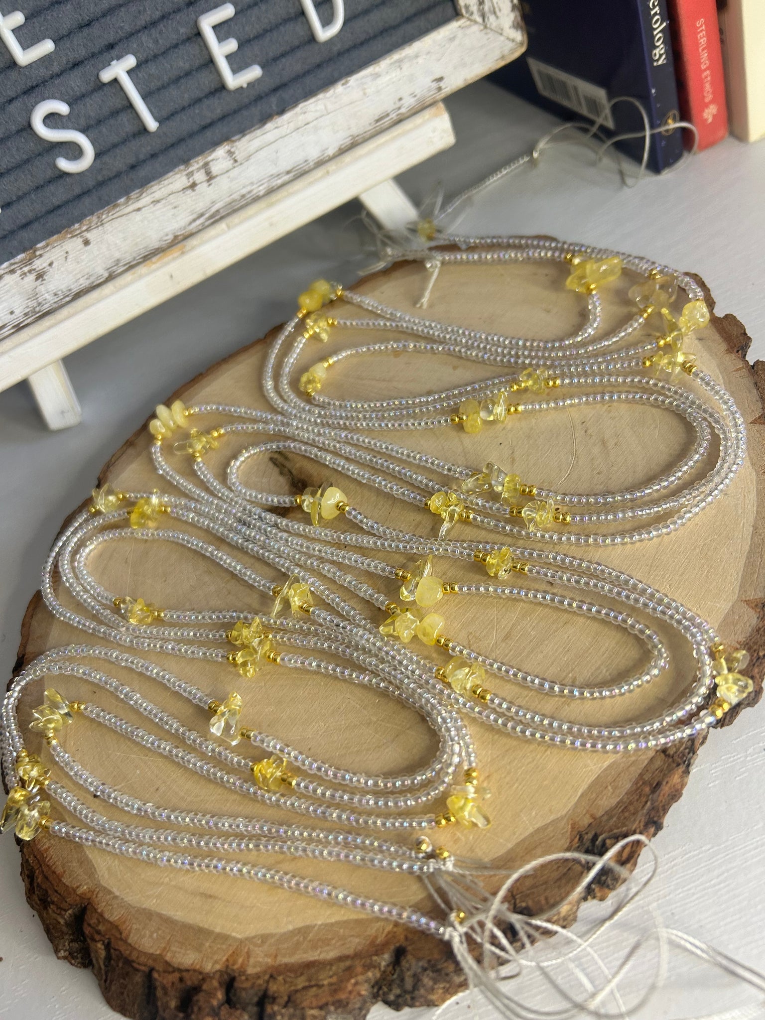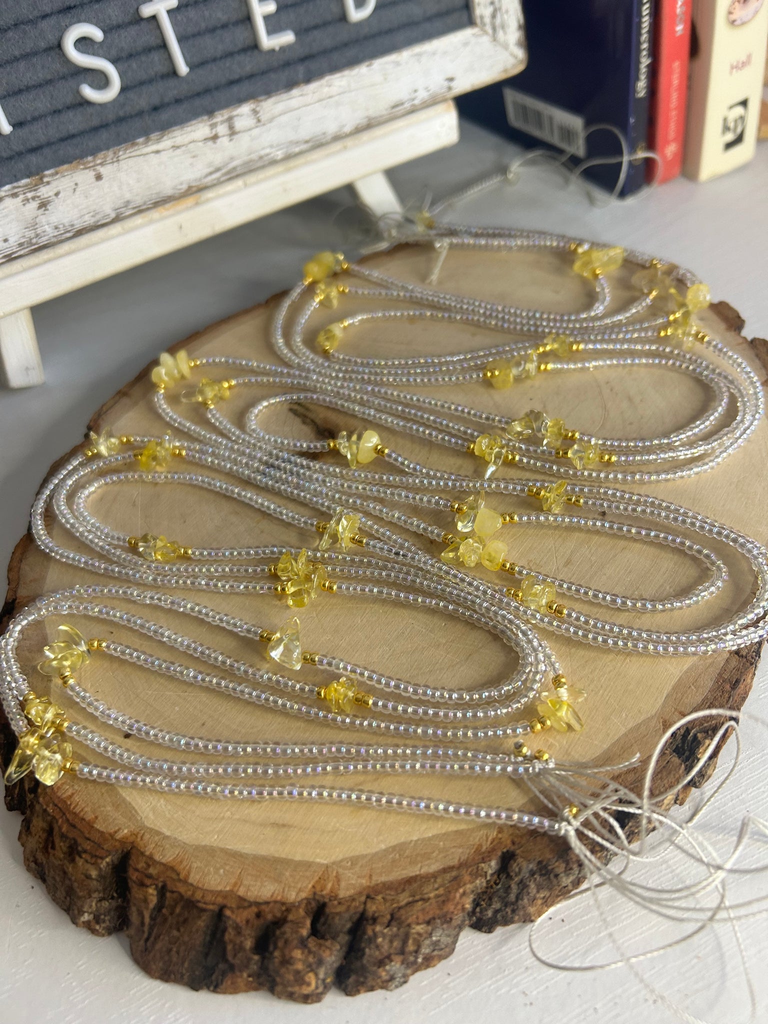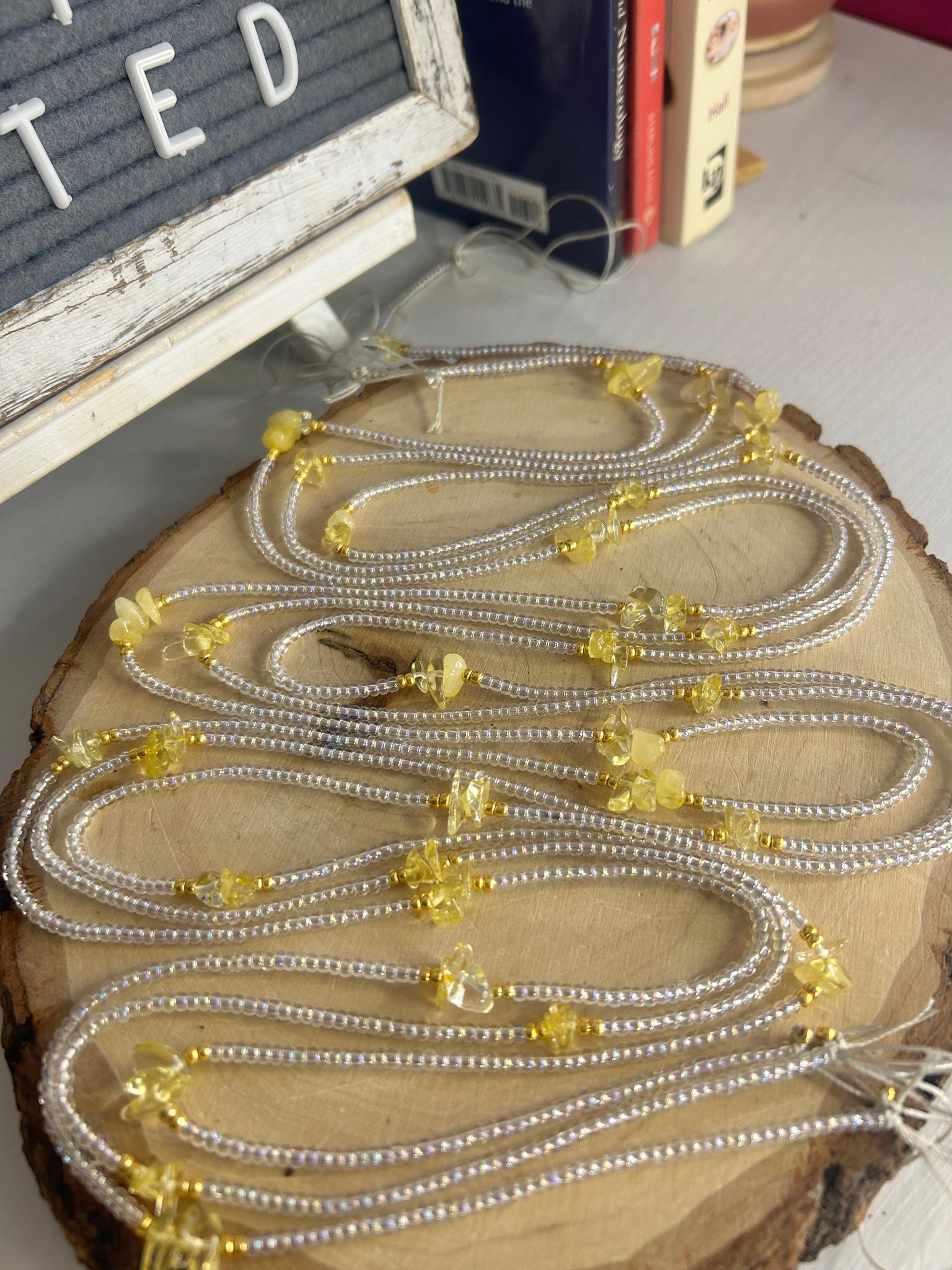 The clear beads amplify Citrine’s radiant energy while symbolizing clarity, purity, and alignment, making this waistbead perfect for manifestation rituals, daily empowerment, or as a stylish reminder that abundance is your birthright.